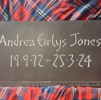 It has been a successful and rewarding year at City & Guilds. As it was necessary to change course, I graduated with a Diploma in Higher Education (Carving) in June and exhibited the stone capital I was working on when we last met, a ciment fondu transcription of a Joan Eardley pastel drawing and a relief carving of a foliage spray (image attached). We exhibited at 2 Temple Place on the Embankment in August; the image is of my capital resting - upside down! - prior to being carried up to the exhibition space. It has been a great honour to carve the memorial stone for my oldest school friend, Andrea Jones, who very sadly died two years ago. The stone is almost complete (photo attached) and I will take it to her family in Scotland this year.